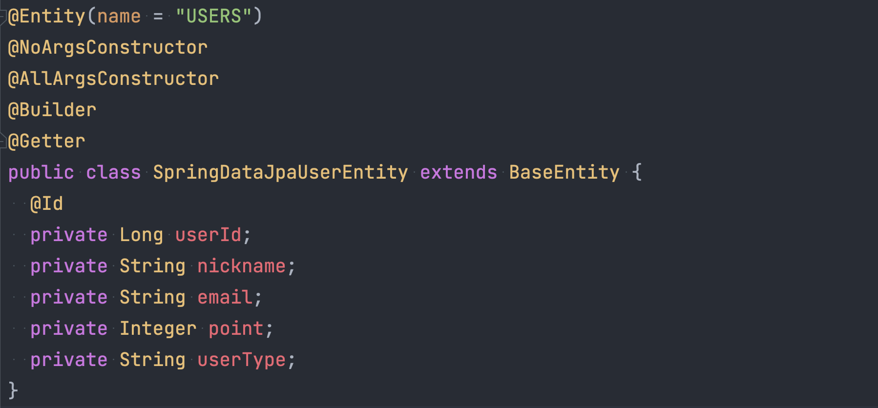 - @Entity 애노테이션을 비롯해서 여러 Jpa 기술에 종속적인 코드가 첨가된다.